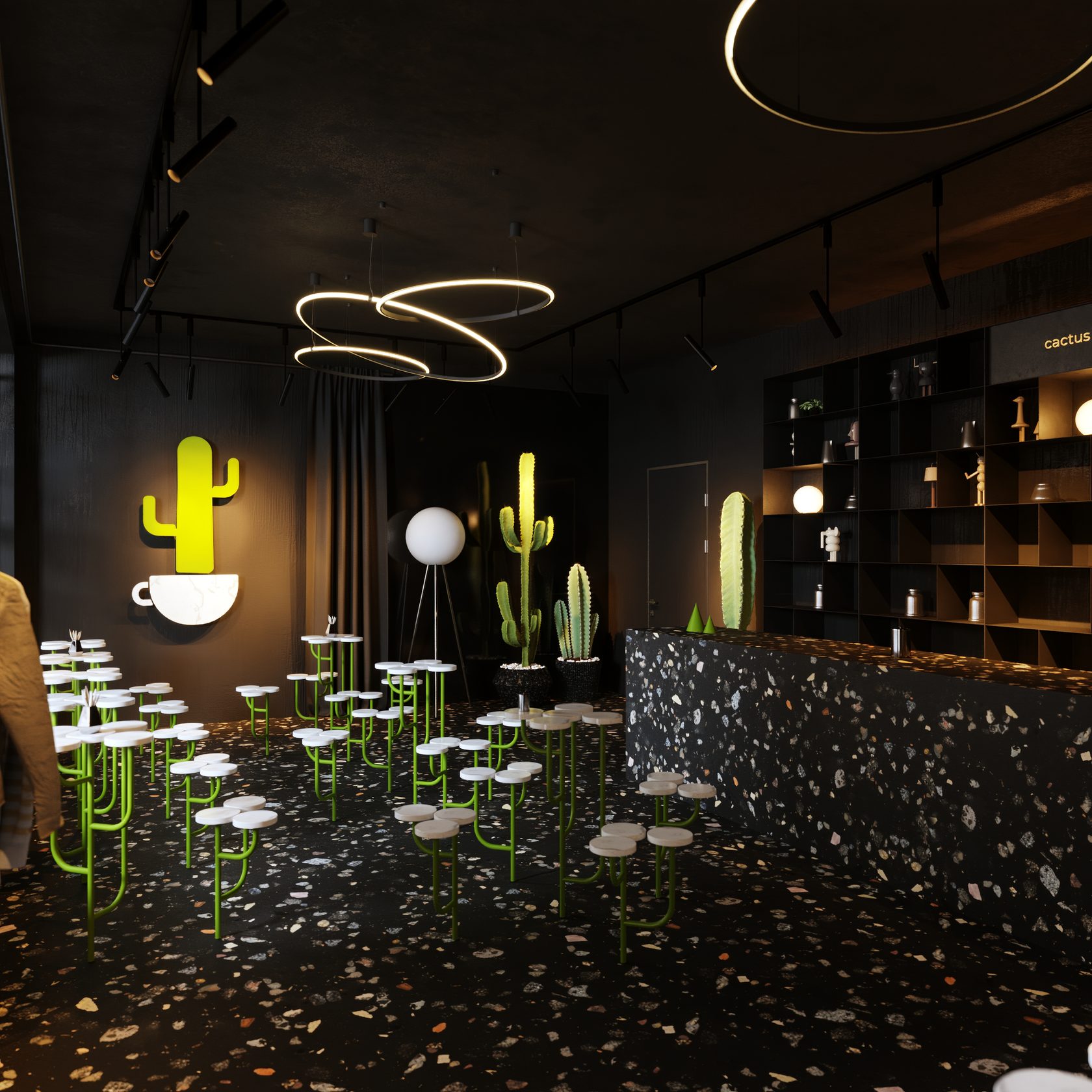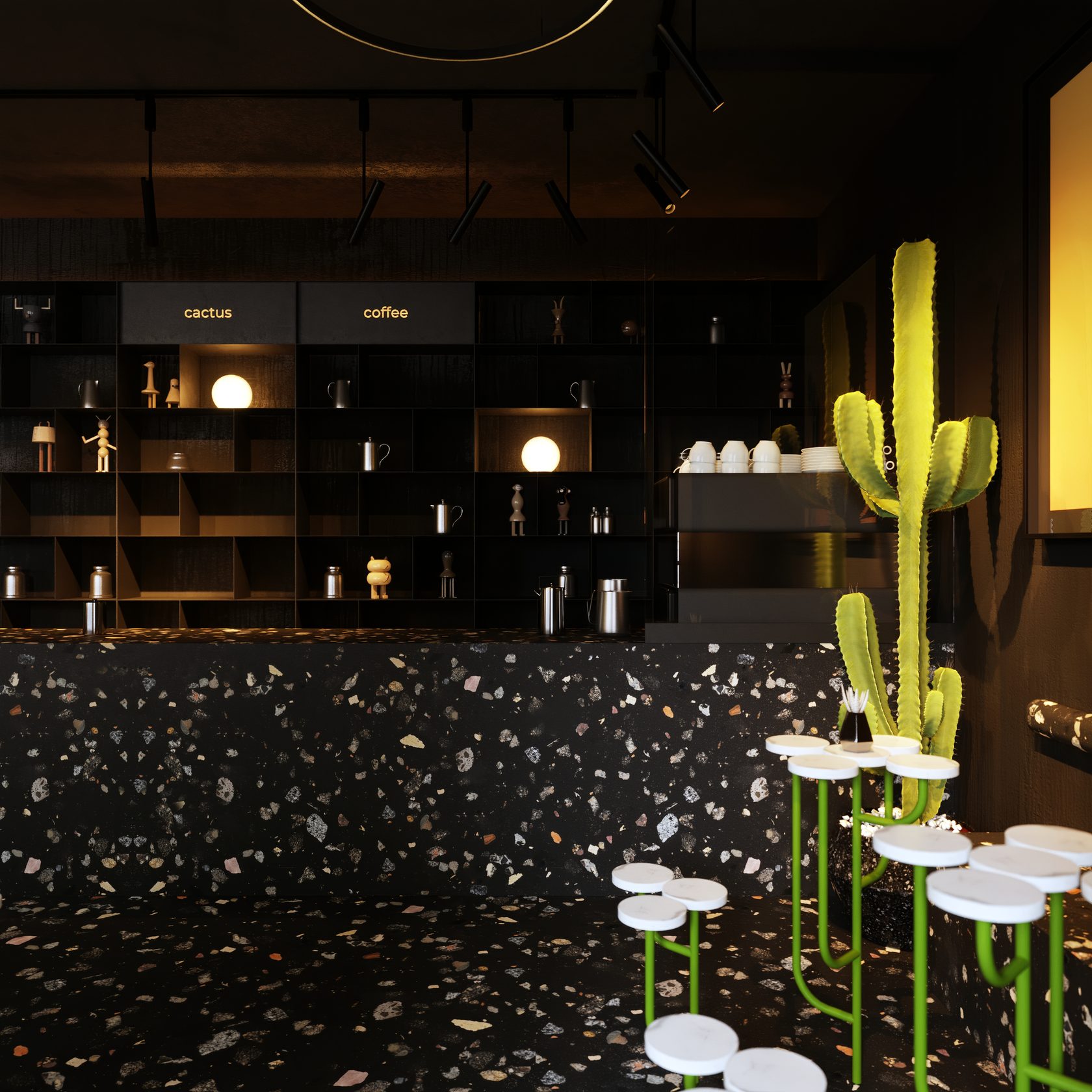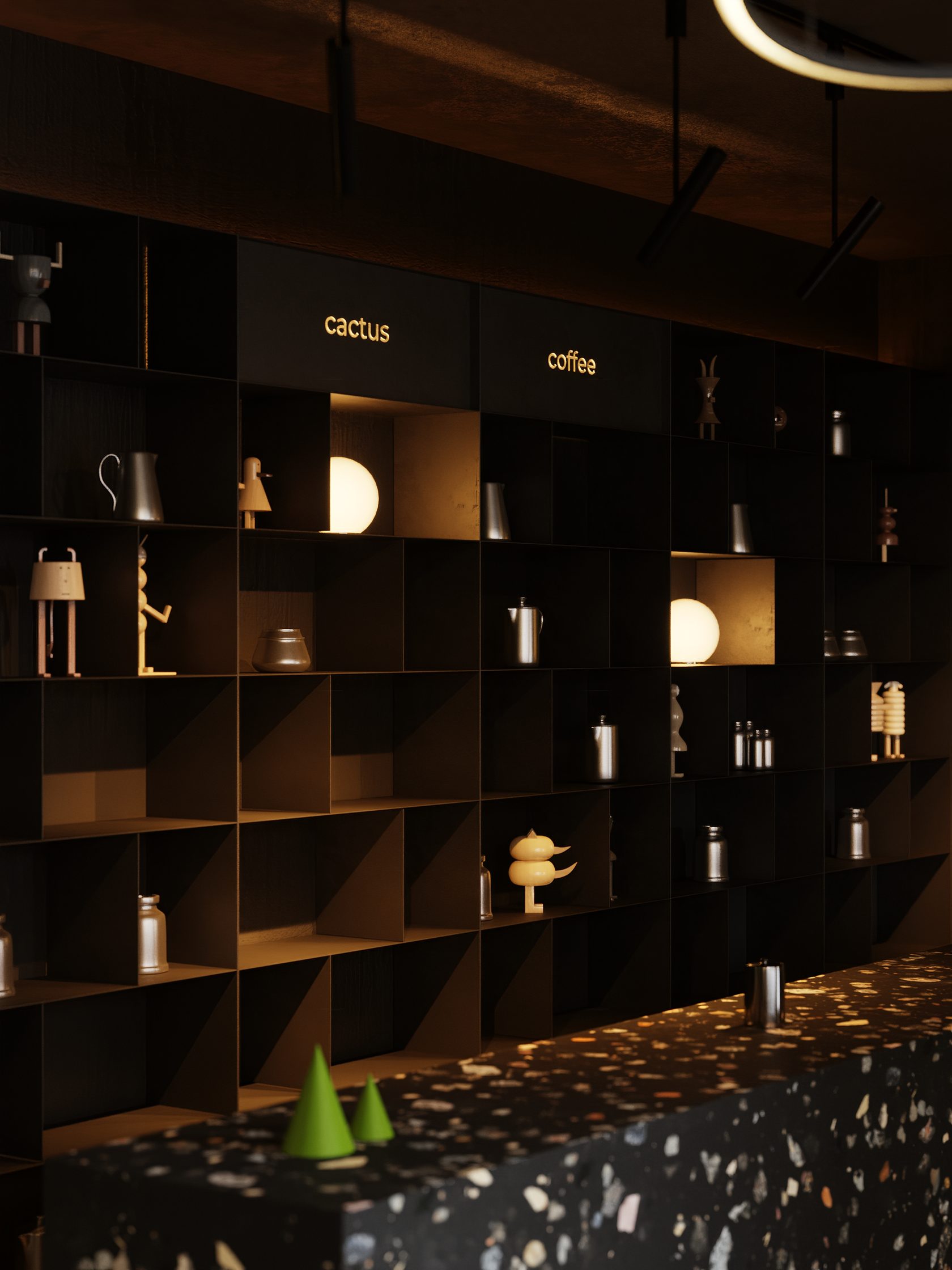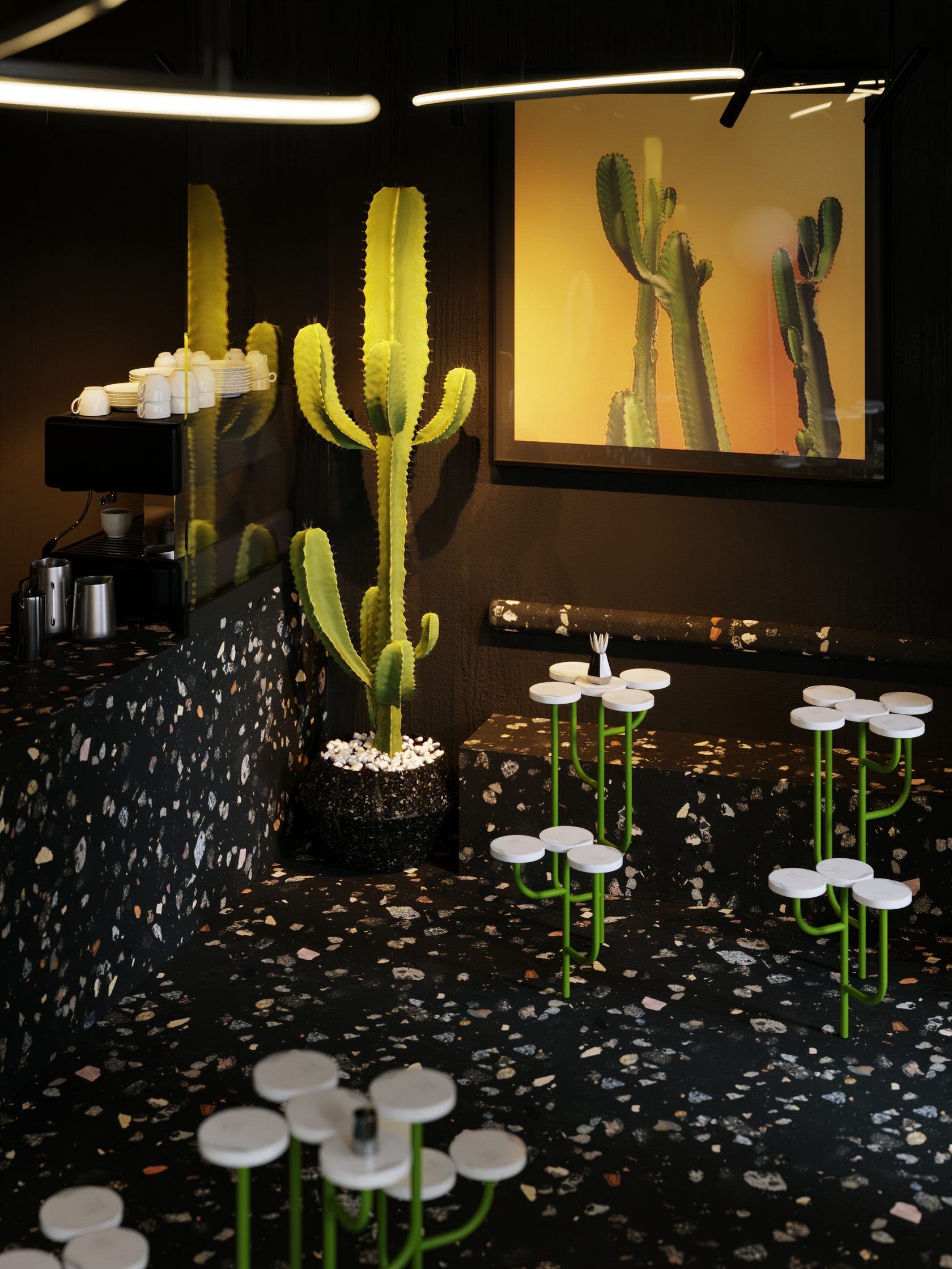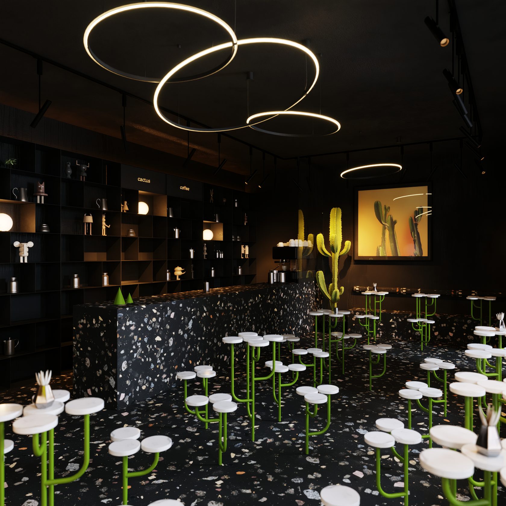 Экспериментальный проект кофейни в несуществующем месте и помещении в городе, который похож на Санкт-Петербург.